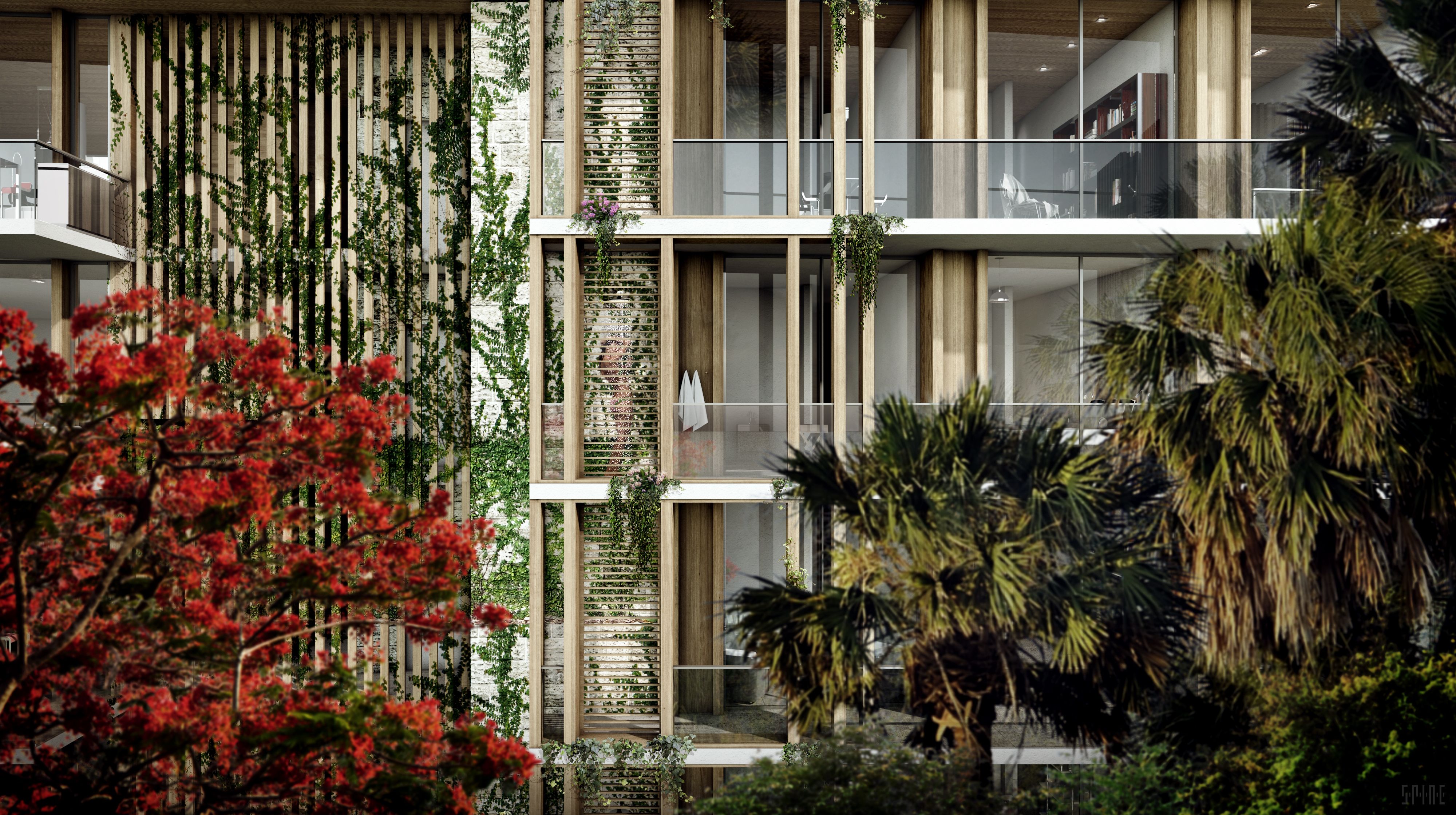 - Distinctive Coconut Grove-inspired façade integrating natural materials and private gardens